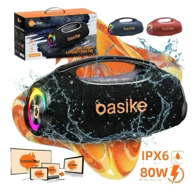 CAIXA DE SOM BASIKE BOOMBOX BLUETOOTH IPX6 Tws 80W